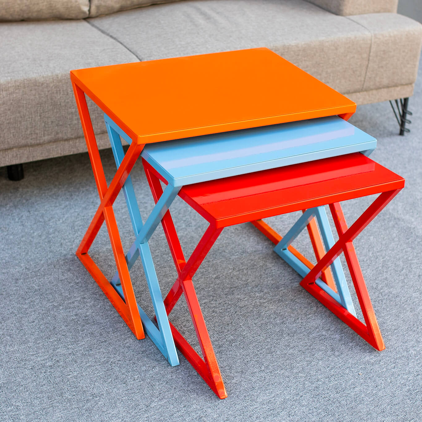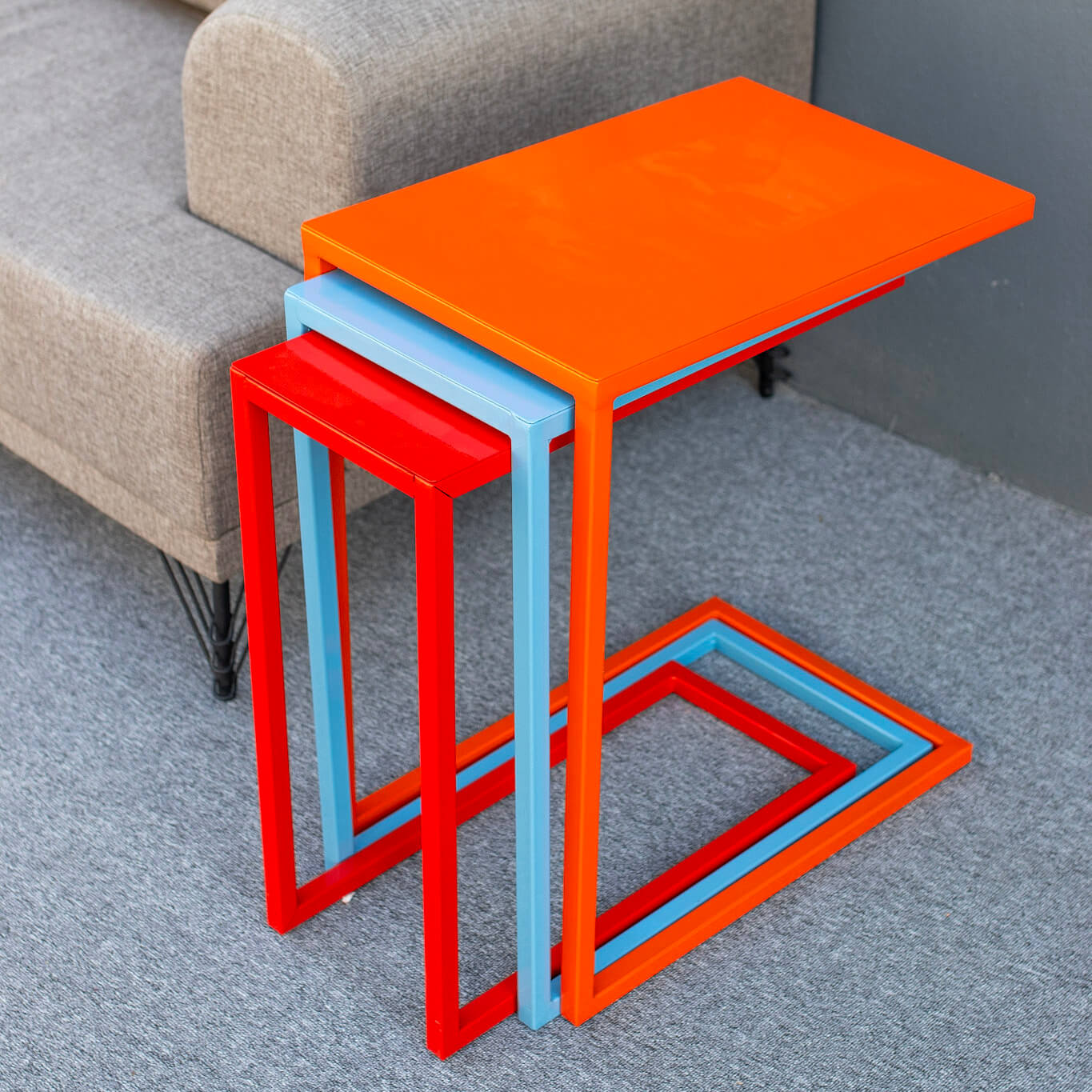 Renkli Kum Saati 3’lü Metal Zigon Sehpa
