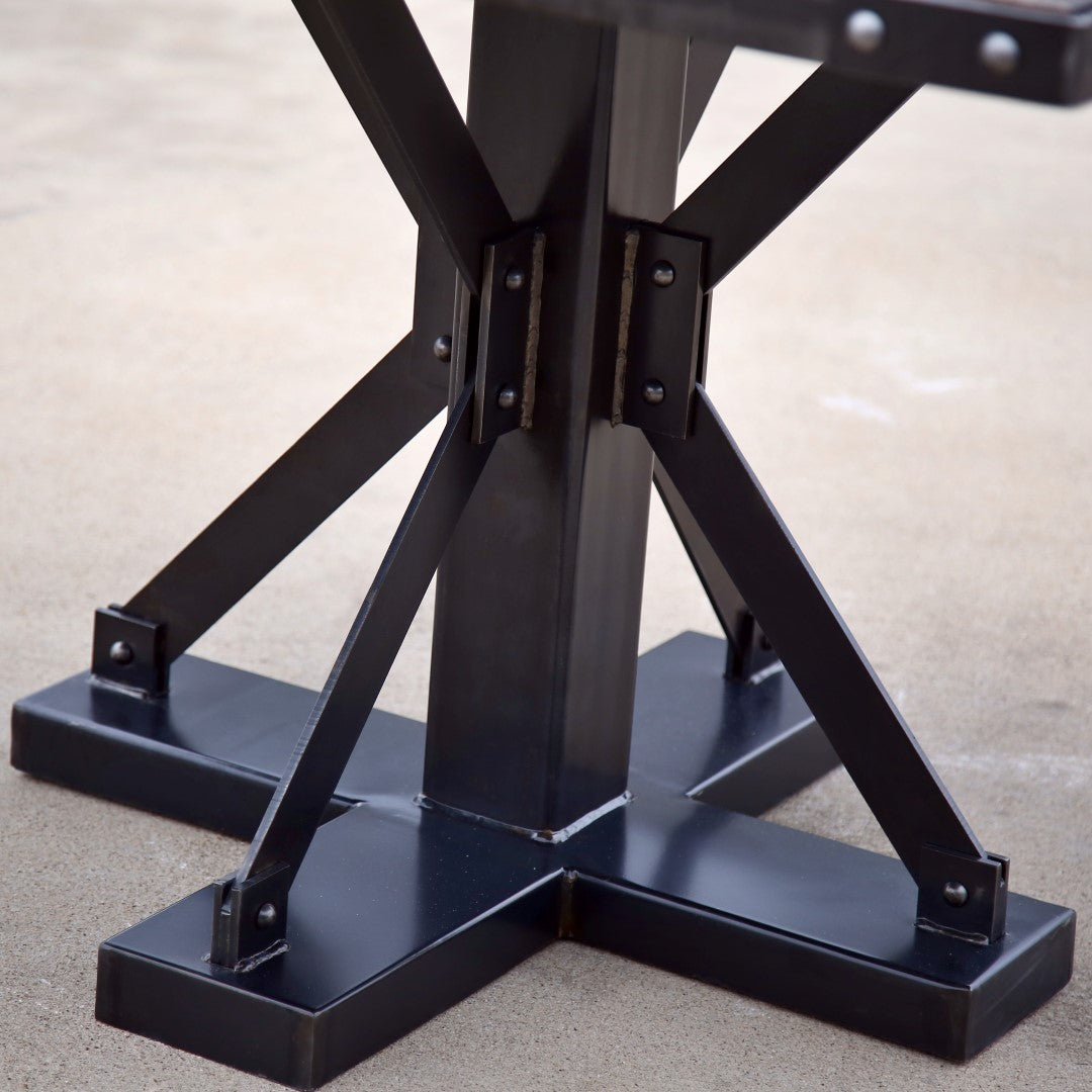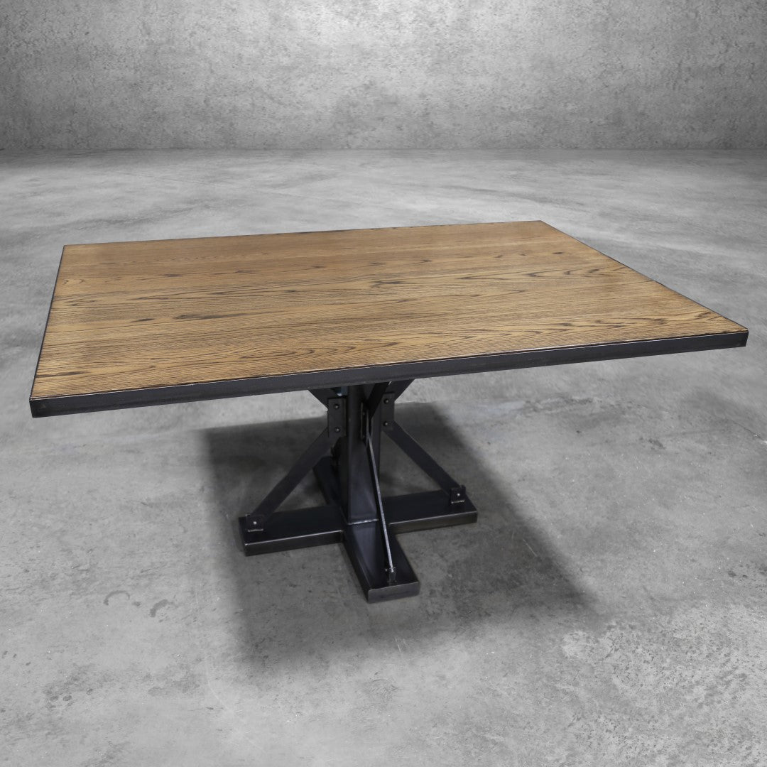 Ahşap ve endüstriyel esintili destek yapısının birleşimi sağlam ve şık bir görünüm yaratır. Yemek masası, arkadaşlarınızla ve ailenizle yemek ve toplantılara ev sahipliği yapmak veya şık ve işlevsel bir çalışma alanı olarak mükemmeldir.
