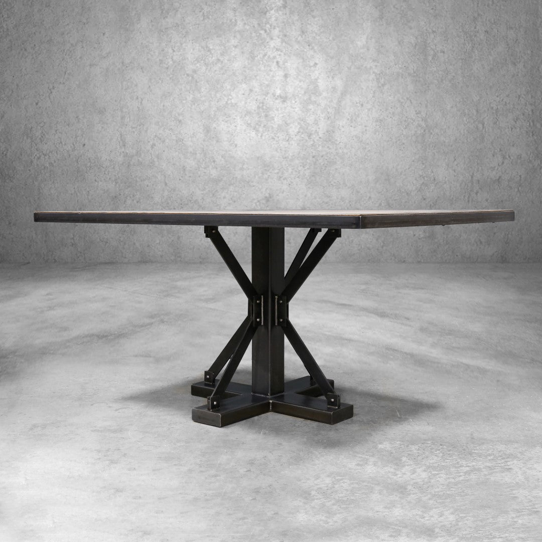 Adowan yemek masası, modern veya endüstriyel esintili her alan için bir ifade parçasıdır. Masif ahşap tablası, daha fazla stabilite için perçinli dört nokta ile desteklenmiştir.